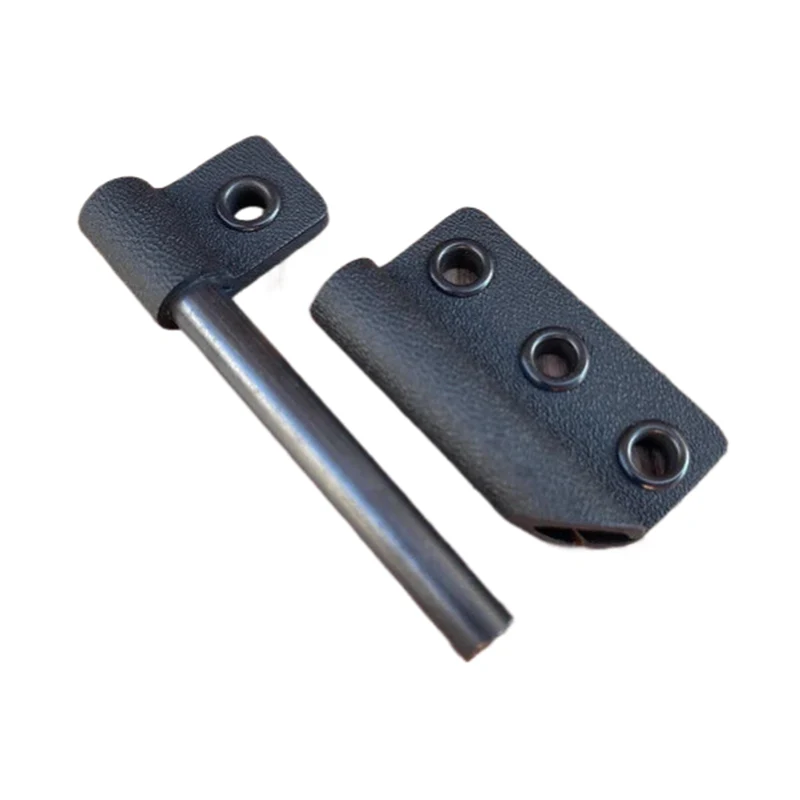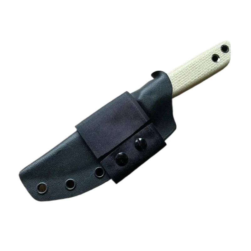 Ha kicsit lejjebb szeretné vinni a kést, akkor Kydex tartós nylon pántot ajánlok. A tépőzáras vagy bőrhurkok ideálisak a késnek az övön való áthordásához. A tépőzár praktikus megoldás a késnek a hátizsák pántjára való rögzítésére is. A Kydex hüvely mellé tűzacél tartót is rögzíthetek, opcionálisan tűzacéllal (80mm hosszú).