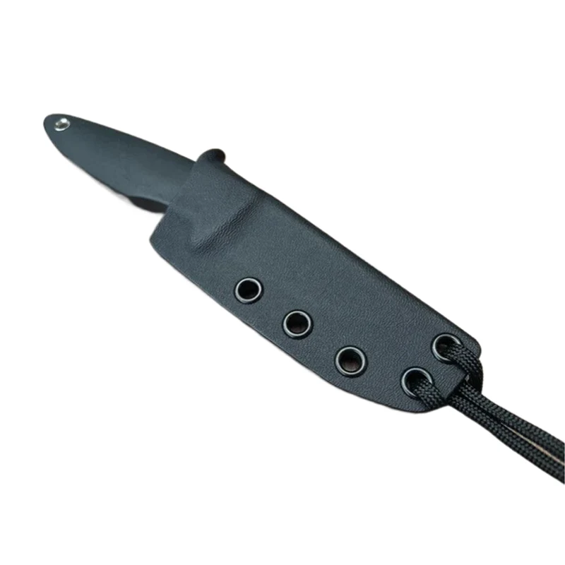 A vízszintes késhüvellyel rögzített pengét is úgy alakították ki, hogy tökéletesen illeszkedjen, a puha fogantyút szem előtt tartva. A Kydex hüvely formája ideális a Mini kés nyak körüli viselésére is, mint nyakkés.